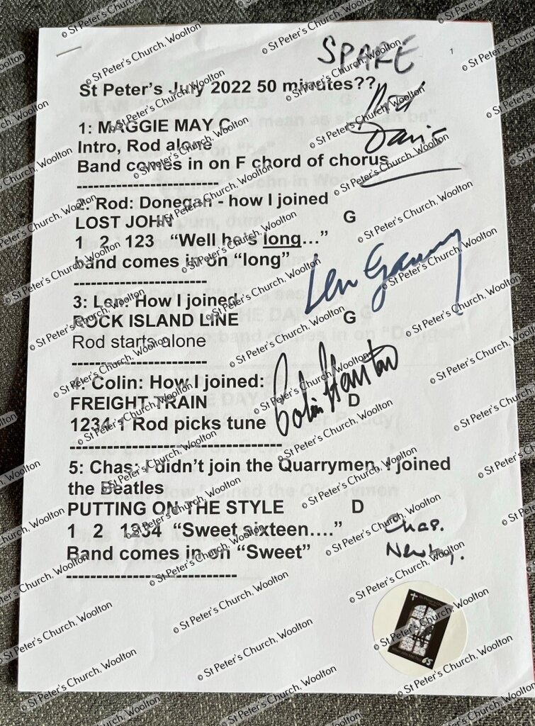 The event is seated (general admission) but there will be room to get up and dance too! Non-alcoholic refreshments will be available to purchase, but you are welcome to bring your own drinks too (of any variety)! There will also be the chance to purchase exclusive merchandise from St Peter’s Church and the Quarrymen – as well as photo and signing opportunities. The venue is fully accessible but please do get in touch if you have any access requirements or require a reserved (Blue Badge) parking space.